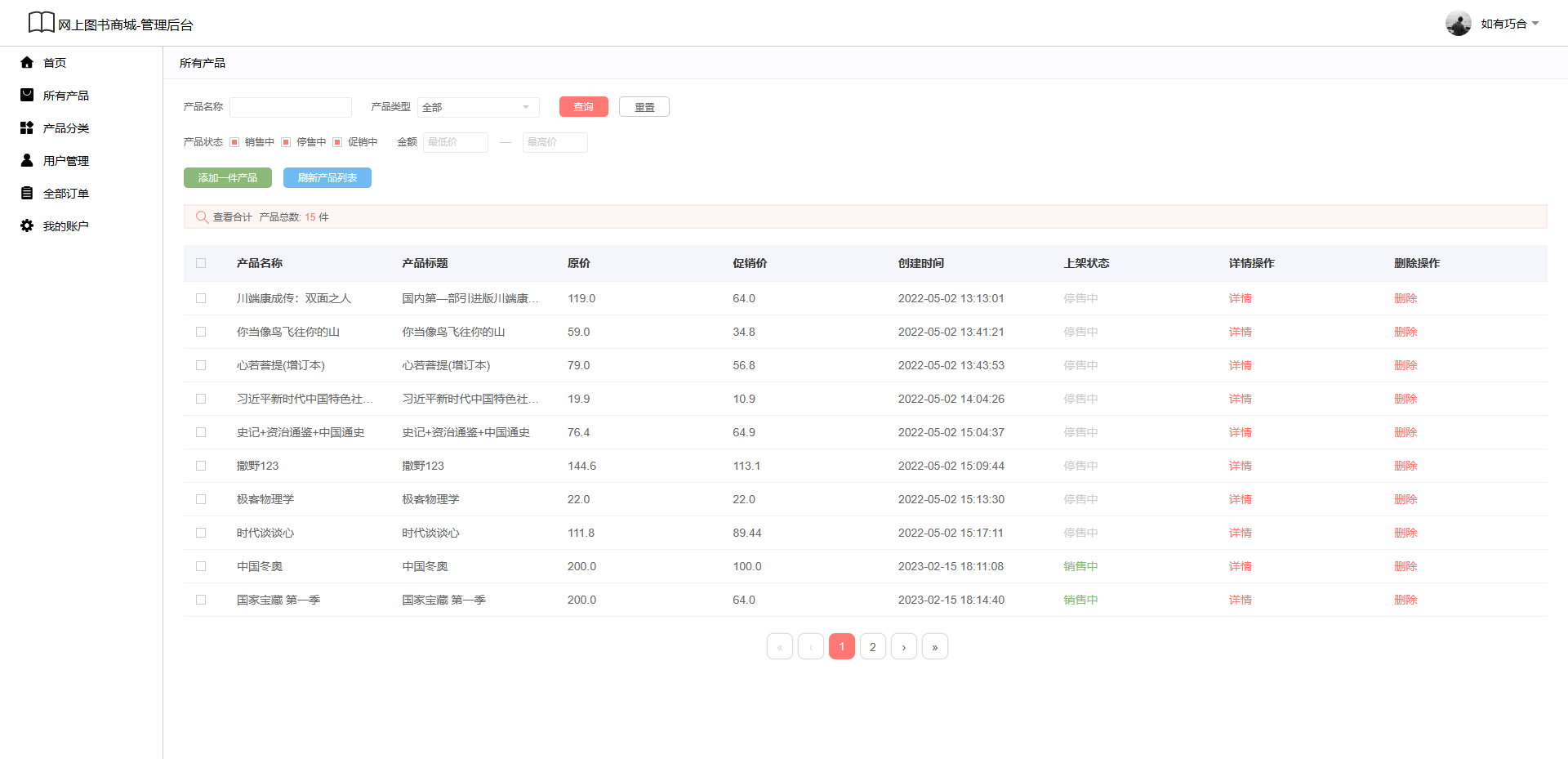 基于SSM的网上图书商城后端采用Java语言后端框架采用SpringBoot,前端网页采用Jsp实现,本系统涵盖基本的商城功能如登录,注册,商品高级检索,商品放大镜,购物车,下单,物流追踪,分类检索,后端可以进行商品发布,下架商品,删除商品,设置商品分类等