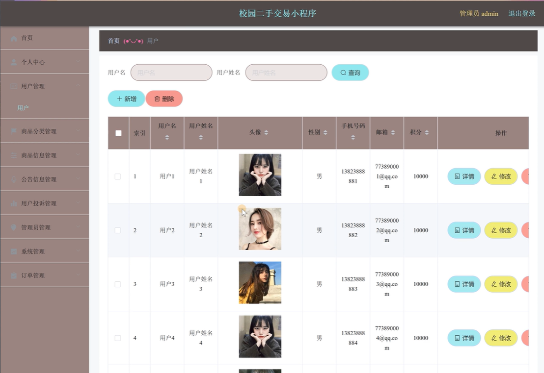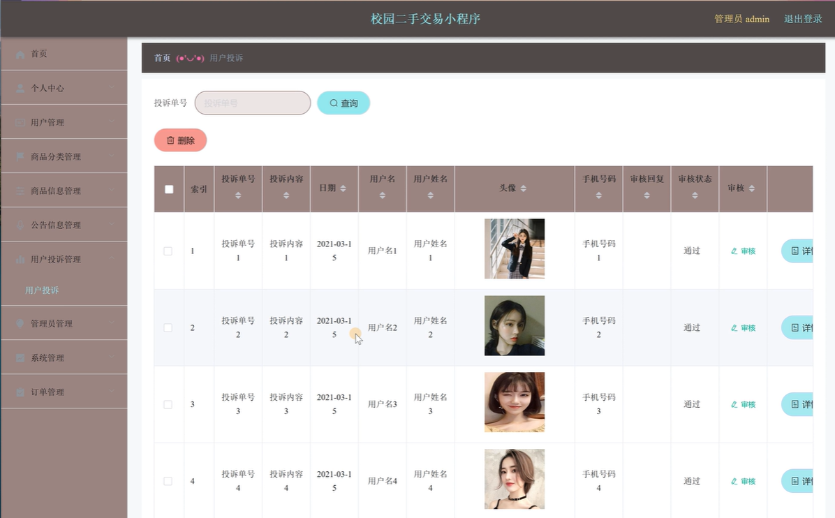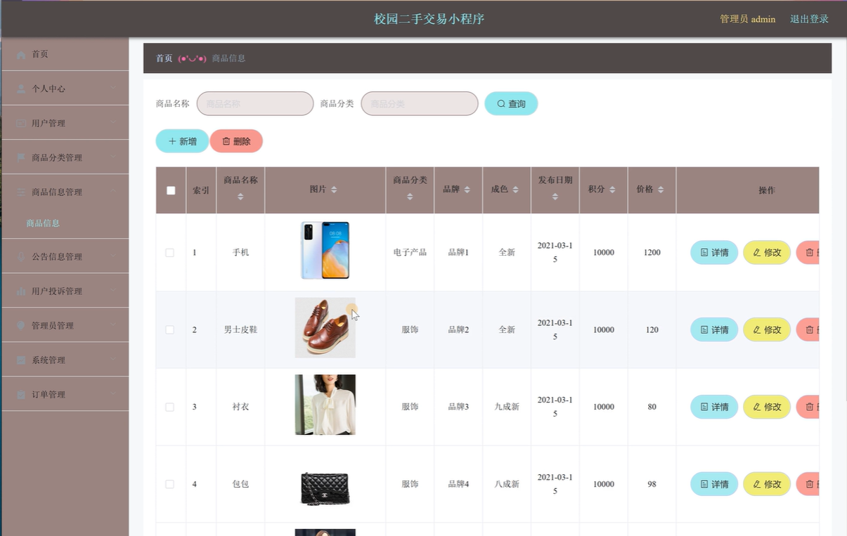 校园二手交易平台是一款基于微信小程序和web端的系统,主要面向学生和管理员,提供丰富的功能。对于学生,可以通过小程序完成注册和登录,查看商品信息和校园公告,加入购物车以及进行积分兑换。同时,学生也可以与客服进行联系。对于管理员,可以管理用户信息、商品分类、商品详情、订单信息以及在线客服等方面。该系统功能齐全,非常适合作为微信小程序程序设计的参考和学习资料。