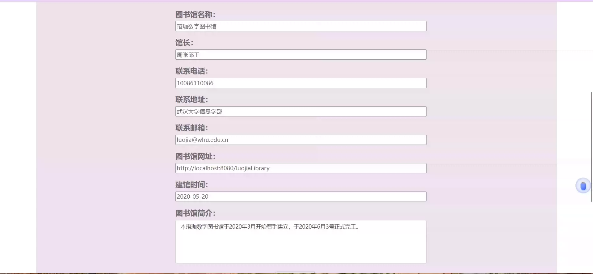 3. 图书馆信息:系统可以展示图书馆的基本信息,包括图书馆的名称、地址、联系方式等。