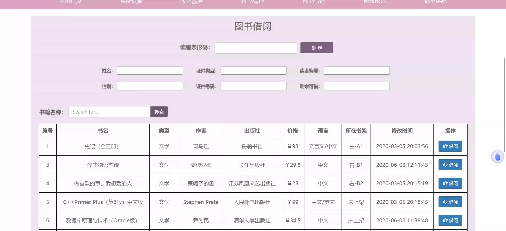 5. 读者服务:系统提供对读者账号的管理功能,包括添加读者、删除读者、修改读者信息等。