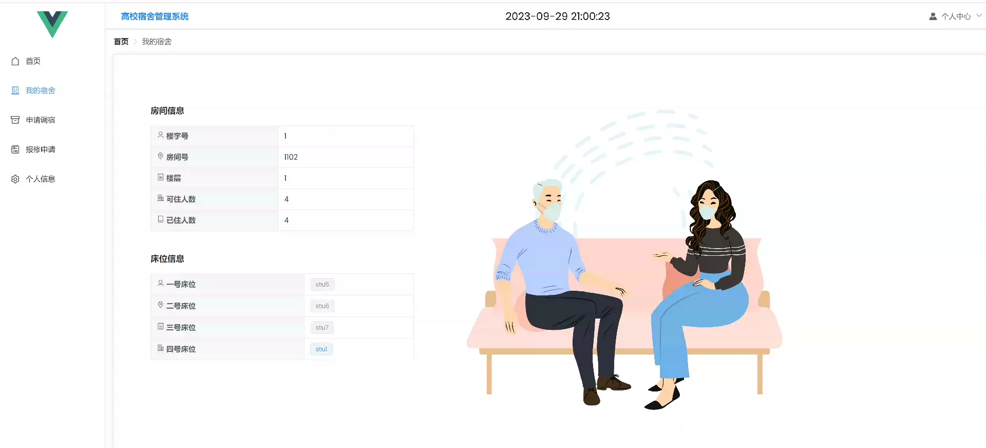 查看宿舍信息:学生可以查看自己所在宿舍的相关信息,如宿舍号、床位号等。