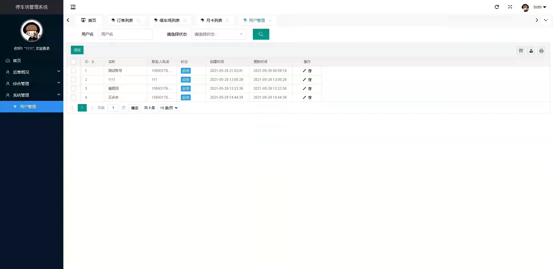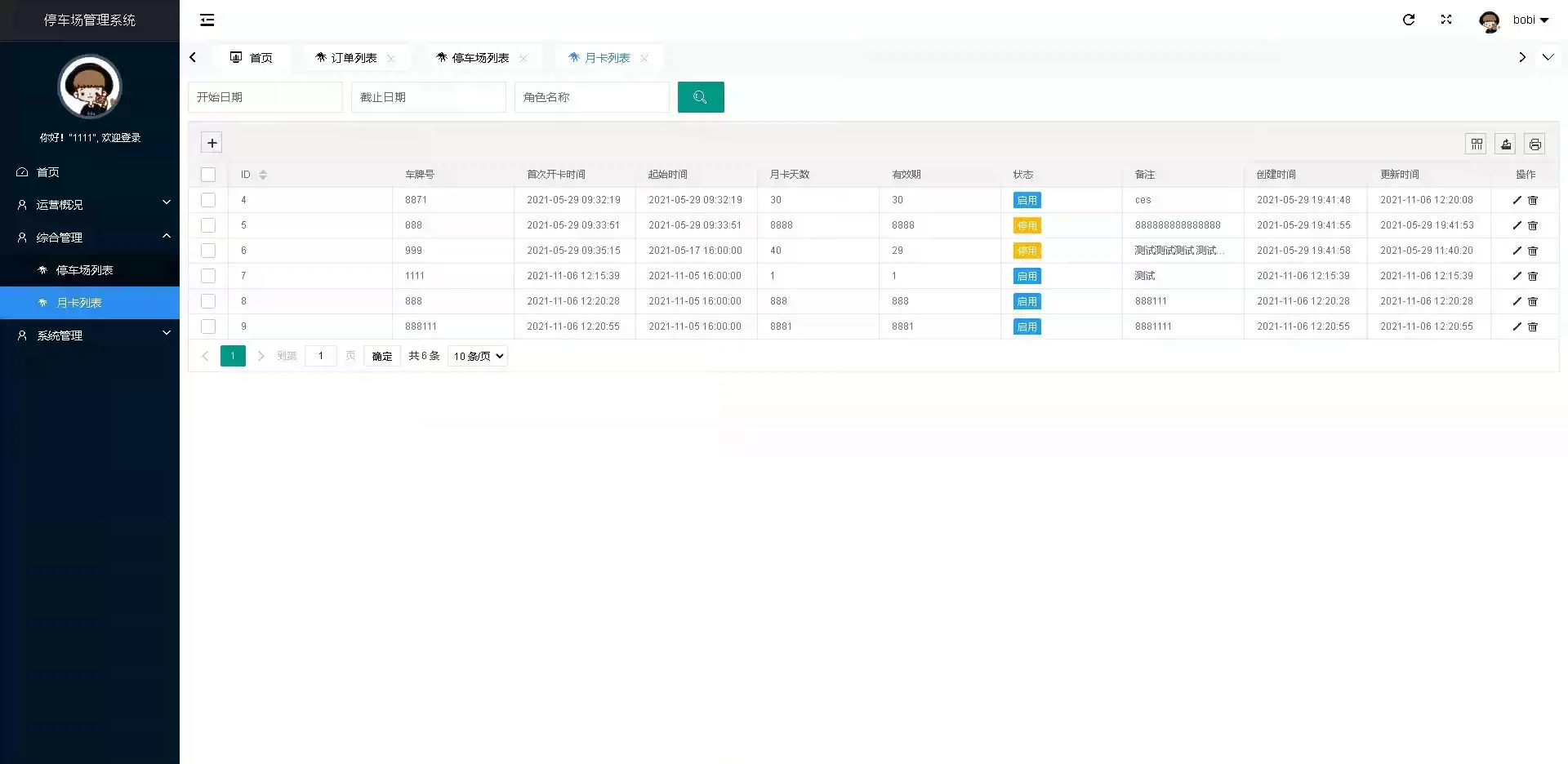 显示所有月卡信息,包括用户信息、开始时间、结束时间等;